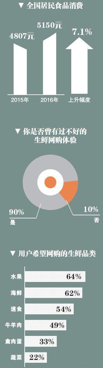 反观行业内的相关标准规范,尽管2015年10月实施新食品安全法后,对入网食品经营者的资质、第三方平台提供者监督责任、赔付义务等做出了相应规定,明确网络食品交易第三方平台提供者对平台上卖家的监督作用,网络食品交易第三方平台提供者未履行规定义务,使消费者权益受到侵害的,应当承担连带责任,并先行赔付。但从消费者的反馈情况来看,网购生鲜的过程中难免遇到难题。