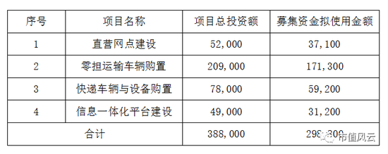 德邦物流本次拟发行不超过1.5亿股,募集资金29.88亿,详见下表(单位:万元):