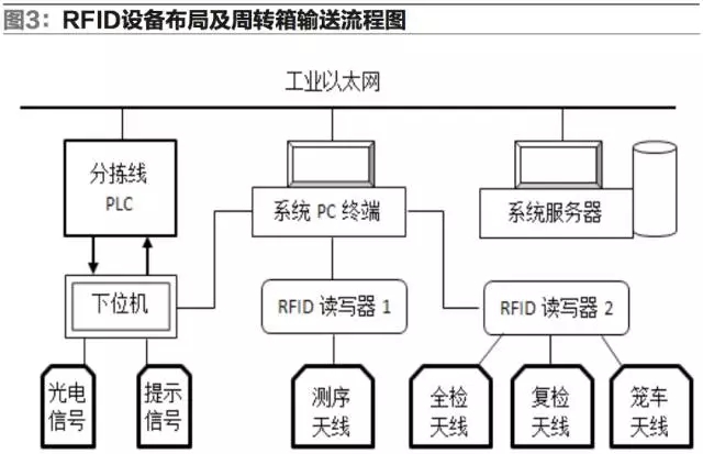 如图3,RFID设备的布局和对周转箱的状态检测流程为: