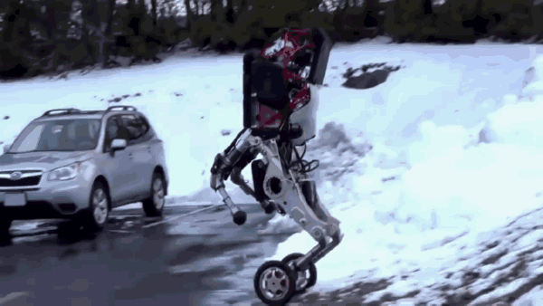 波士顿动力最新的机器人被称作“Handle”,是一款半直立两足机器人,两足装有轮子可快速行驶,同时还能够跳跃避开障碍物,在雪地里都畅行无阻,并且可以携带45公斤的重量,感觉上是一个很有潜力的“送货小能手”。