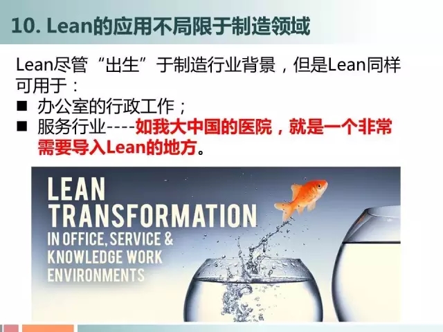 Lean的概念最初来源于丰田汽车的TPS(Toyota Production System),尽管“出生”于制造背景,但是Lean同样可用于办公室的行政工作,以及服务行业----如我大中国的医院,就是一个非常需要导入Lean的地方。