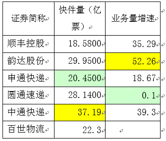 另一方面,原来三通一达的优势企业申通、圆通有掉队势头。上半年,申通快件量略高于顺丰,六家中倒数第二;圆通业务量未实现明显增长。