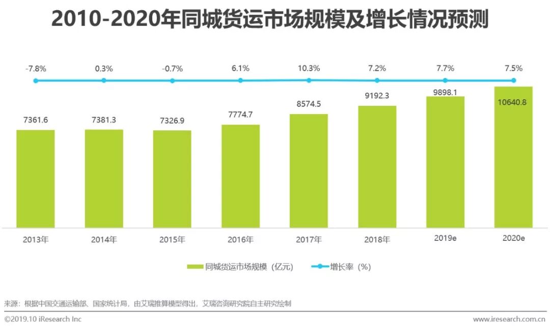 新动能、新标准、新边界塑造新未来消费转型进一步提升了同城货运的物流需求,互联网通讯继续深入改造行业底层的技术标准,加之外部资本和快递快运领域巨头的加入,同城货运将在稳定发展的路途中加速与相邻物流领域的融合。物流土壤优良,货运增长稳定在物流运输市场增长的大背景下,同城货运市场保持良好的增长势头,市场规模突破万亿;从政策、经济、社会环境和技术条件等方面的成熟为市场稳定利好发展提供土壤,技术变革和市场需求演化也催生了新的运营模式,头部企逐渐在市场发声,给行业的增长和发展注入持续动能。竞争激烈,格局分化,破局有道行业在高速发展并分化出不同的市场和运作模式,受制于上游需求的高离散特性,市场集中度极低;市场中已有的头部企业、综合物流企业的跨界拓展以及外部待入的资本,三类角色在竞争过程根据自身特性将演进出不同的发展路径,在碰撞中持续推动行业进步发展。