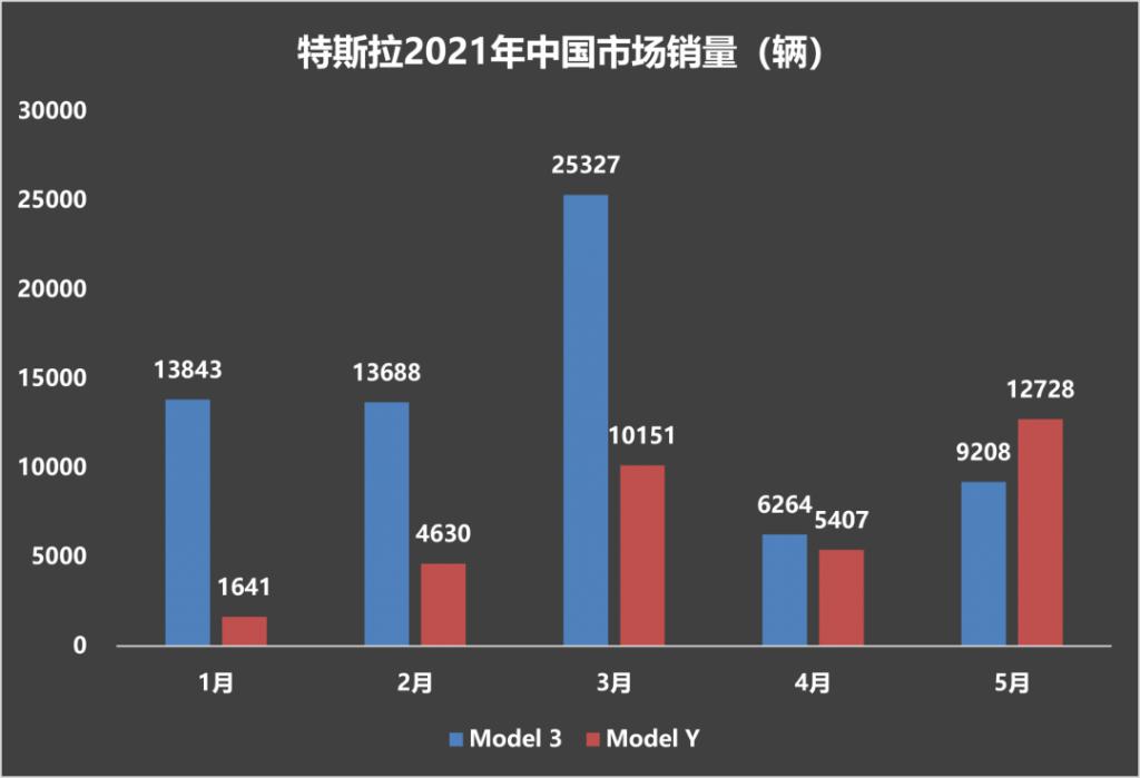 一个更值得关注的数据是,今年 5 月,Model Y 在中国市场的销量,首次超过了 Model 3(Model 3 销售 9208 辆,Model Y 销售 12728 辆),在中国新能源车型销量榜中排第二,仅次于宏光 MINI。