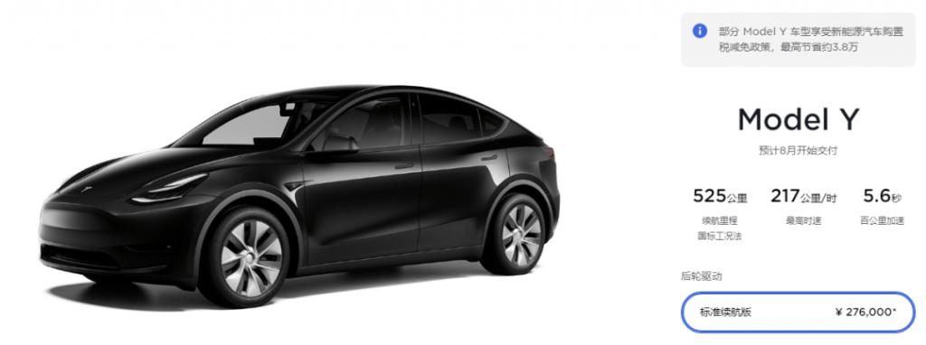 7 月 8 日,特斯拉正式上线 Model Y 标准续航版,续航里程 525 公里,百公里加速 5.6 秒,最高车速 217 公里 / 小时。最重要的是,起售价只有 27.6 万元,让很多人惊掉了下巴。