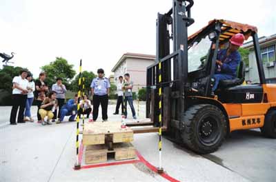 叉车工技术比武分实际操作和理论知识两部分,实际操作选择的是绕曲线垒高作业。经过紧张激烈的角逐,来自红剑集团的职工代朝柒拨得头筹。据了解,前三名的选手将被授予萧山区“第十届技术能手”称号,并获得叉车工高级工职业资格证书。据悉,此次技术比武活动由区总工会、区人社局、红山农场主办。