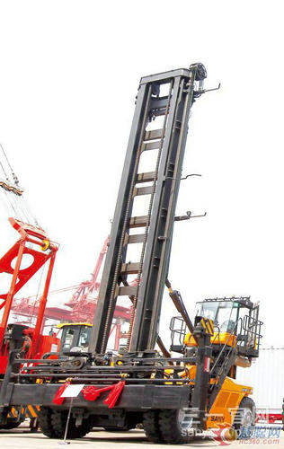 “此款堆高机为天然气动力的集装箱空箱堆高机,完全由三一港机自主研发,最大的特点是无污染,零排放。同时,可以为客户节约17%-22%的使用费用。” 三一港机研究院叉车所所长李健告诉记者。