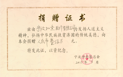 近日,公司董事长储吉旺将100万元的捐款支票交到市慈善总会常务副会长项性平的手中,至此,“吉旺慈善帮困基金”增加到1200万元。此前,公司还向宁海县慈善总会捐款100万元,“五水共治”100万元。储吉旺说,这300万元是公司不搞30年庆典而捐出的,是我们对社会的一种反哺,一种感恩。据统计,至今储吉旺和公司累计向慈善公益事业捐款1.1亿多元。