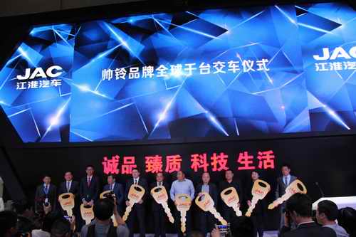 4月20日,作为中国商用车行业的领军品牌以及低碳科技和环保排放的践行者和倡导者,江淮轻型商用车携旗下帅铃品牌全系车型以及最新国五动力恢弘参展,展示了其前沿科技成果及中国品牌的魅力。安徽江淮汽车集团有限公司董事长安进、安徽江淮汽车股份有限公司总经理项兴初等公司领导及行业嘉宾出席了本次活动,并与来自全国的行业媒体共同见证了帅铃品牌全球千台交车仪式及江淮轻卡节油挑战赛启动仪式的发布盛况。