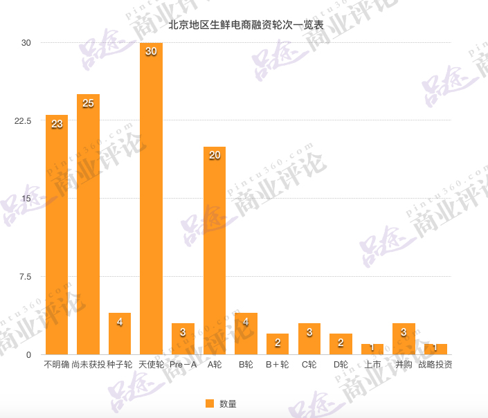 生鲜项目融资轮次在天使轮和A轮扎堆,说明入局生鲜电商的资本多为早期风险投资,在最初选择生鲜项目时多是抱有站赛道的目的,若是半年内生鲜电商不能表现良好,按照此类资本的投资节奏,很容易就会被资本抛弃。
