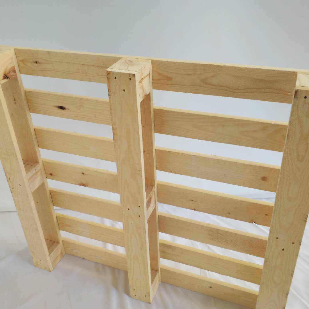 木托盘以原木为材料,进行干燥定型处理,减少水分,消除内应力,然后进行切割、刨光、断头、抽边、砂光等精整加工处理而形成型材板块,采用具有防脱功能的射钉(个别情况采用螺母结构)将型材板块装订成半成品托盘,最后进行精整、防滑处理和封蜡处理。木托盘是现在使用最广的托盘。托盘是用于集装、堆放、搬运和运输的放置作为单元负荷的货物和制品的水平平台装置。一般用木材、金属、纤维板制作,便于装卸、搬运单元物资和小数量的物资。