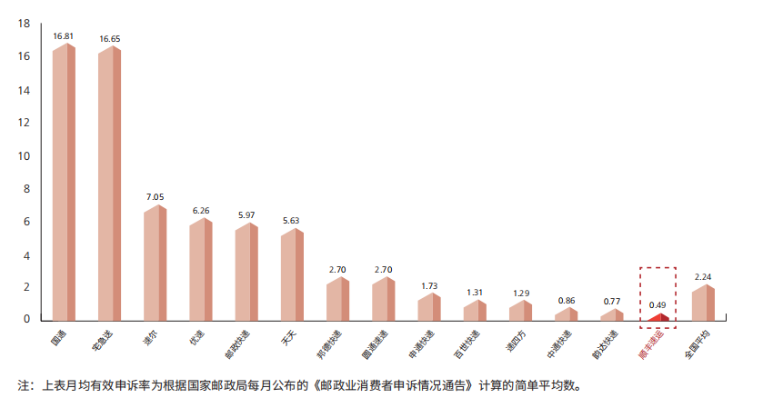 根据国家邮政局发布的《2018年快递服务满意度调查结果通报》显示,顺丰在“快递企业总体满意度”榜上排名第一。这是自国家邮政局2009年首次公布快递服务满意度排名以来,顺丰控股连续第10年蝉联第一,顺丰品质已经成为顺丰议价能力的重要组成因素,招商证券分析师表示,服务质量长期领跑是顺丰提升用户粘度、在中高端市场保持优势的重要因素。