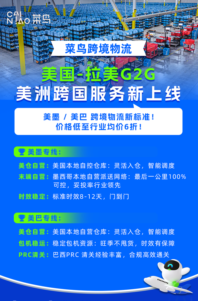 1月9日,据从菜鸟获悉,菜鸟全球物流网络迎来全新突破:上线美洲G2G(国家间)跨境物流服务,建立了美洲区域互发包裹的跨境物流网络。产品首期开通美国至墨西哥的跨境物流服务,覆盖美西最活跃的电商区域及墨西哥99%地区,以行业均价六折的价格打破美国至墨西哥跨境物流的高成本壁垒,为本地电商平台及跨境卖家提供高性价比的物流履约体验。