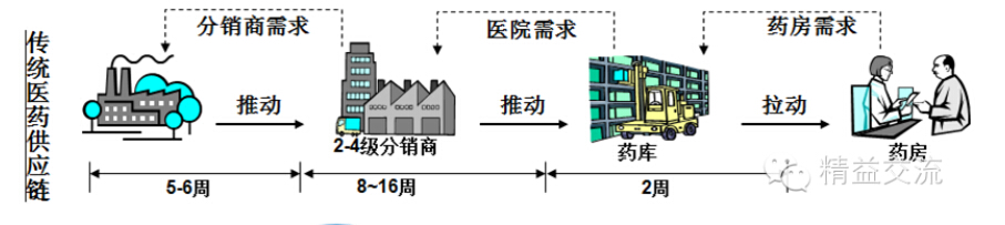 从上图描述传统医药供应链模式可以看出有以下不足: