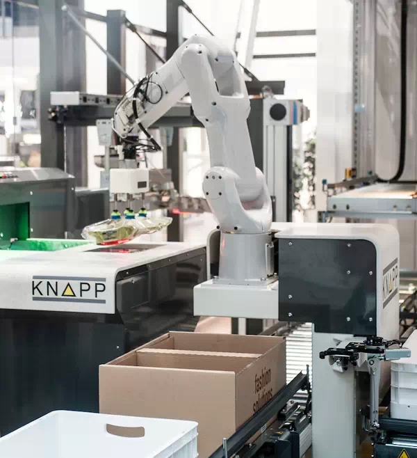 去年供货的机器人拣选系统已经投入高效、准确、可靠的运行。Pick-it-easy机器人采用KNAPP公司KiSoft可视化技术来完成料箱中随机散放的商品识别并拣选,并为机器人进行理想夹抱点的计算。为满足不同商品多种夹具可供选择,同时,Pick-it-easy机器人可长期保持稳定的高吞吐量和准确率。